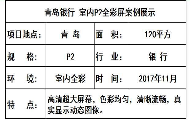 青島銀行 室內全彩LED顯示屏